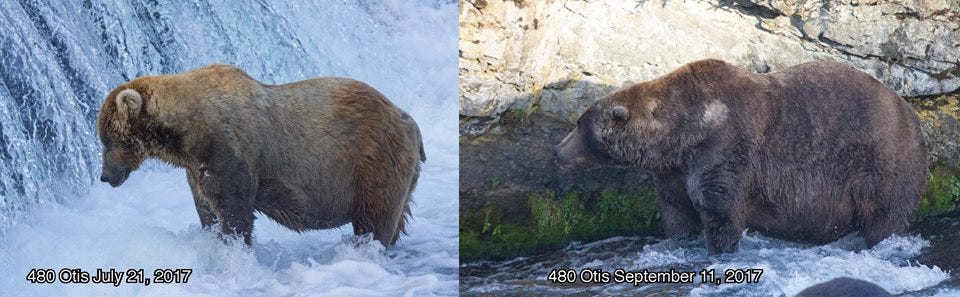 That was surprising to me. I always thought grizzly bears seemed gigantic, but brown bears you don’t think about that much. But their diet is such that they just balloon. I didn’t even talk about this in the article, but they go into this phase when preparing for hibernation where they never feel satisfied: hyperphagia. It actually made me sad! I didn’t think about that as I was writing: they’re actually always hungry, that makes me feel bad for them.