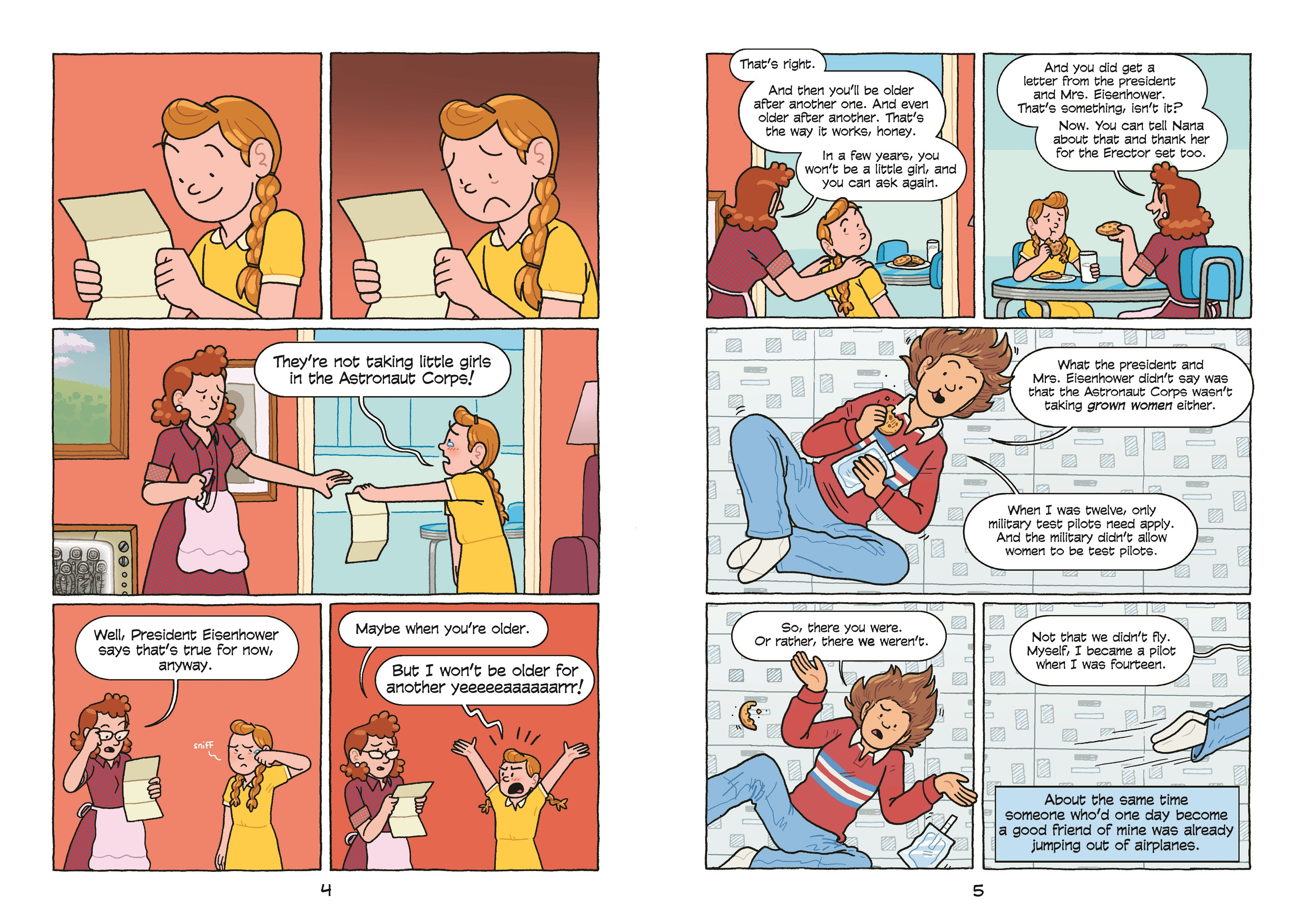 Maris Wicks: Yes! So it wasn't just reading the transcripts of that happening, it was reading accounts and then also looking at photographs. Yeah. And I definitely fangirled out about getting to draw. I mean, I know we talked about how it's not all about Sally Ride, but I was also like, "Oh my God, I get to draw Sally Ride!" I was so excited.